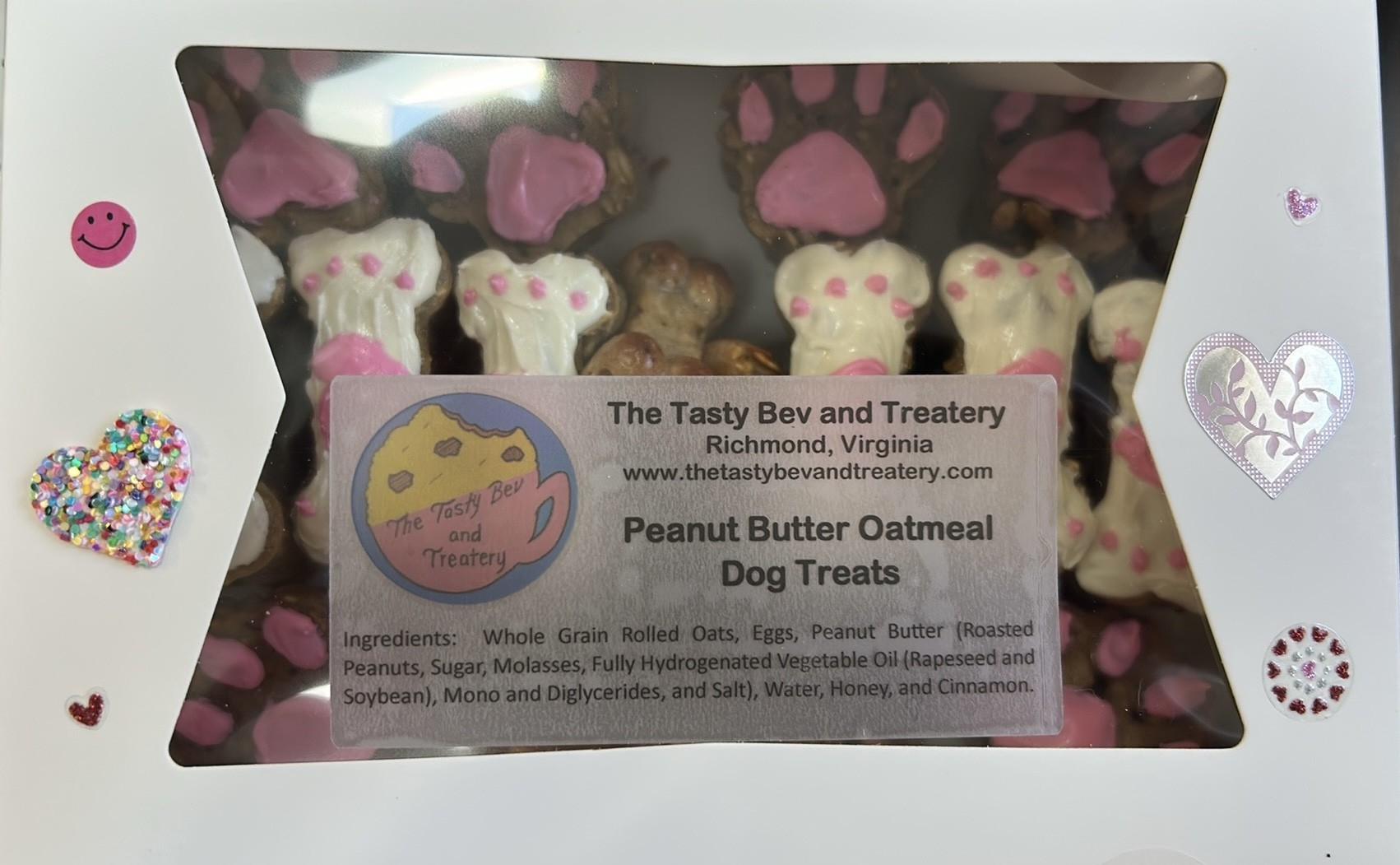 | Peanut Butter and Oatmeal - contains peanut butter, oatmeal, egg, honey, water, and cinnamon | US $3.50 per Bag and $.50 per large treat |